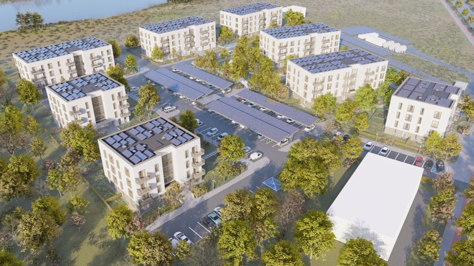 Śremskie TBS prowadzi przetarg na budowę kompleksu mieszkaniowego przy ul. Farnej w Śremie (woj. wielkopolskie). W postępowaniu wpłynęły dwie oferty: Pekabex Bet z kwotą 90,2 mln zł oraz Agrobex z propozycją 97,2 mln zł. Przedsięwzięcie obejmuje realizację ośmiu czterokondygnacyjnych budynków wielorodzinnych z 195 mieszkaniami. Lokale mają być przekazane w standardzie „pod klucz", w pełni wykończone i gotowe do zamieszkania. Termin realizacji przewidziano na 10 miesięcy od podpisania umowy. Projekt zakłada zastosowanie nowoczesnych i ekologicznych technologii. Przewidziano hybrydowy system grzewczy oparty na gruntowych pompach ciepła i sieci ciepłowniczej, a docelowo także innowacyjną kotłownię tlenowo-wodorową. Ponadto osiedle zostanie wyposażone w instalacje fotowoltaiczne oraz pionowe turbiny wiatrowe, które mają ograniczyć emisję i obniżyć koszty eksploatacji. Obecnie trwa postępowanie środowiskowe w sprawie dopuszczenia tych rozwiązań do realizacji.