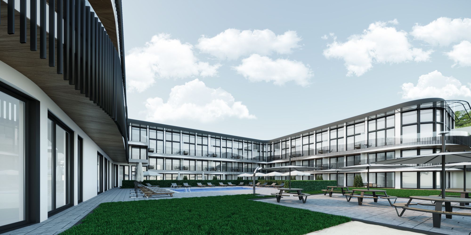 Firma Tobility planuje rozpocząć jeszcze w III kw. br. budowę apartamentów wakacyjnych w Stegnie (woj. pomorskie) przy ul. Brzozowej 6. W I etapie inwestycji o nazwie „Bursztynowe Apartamenty" powstanie 3-kondygnacyjny obiekt (dodatkowo z jednym poziomem podziemnym) o kubaturze ok. 35 tys. m3, mieszczący 94 lokale o powierzchni użytkowej od 35 do 73 m² oraz zaplecze spa m.in. z saunami, basen, restaurację, pomieszczenia rekreacyjne dla dzieci i dorosłych, salę konferencyjną i siłownię. W projektowaniu przedsięwzięcia, którego realizacja ma się zakończyć w I kw. 2023 r., uczestniczyły pracownie Aringa i BConcept. W drugim etapie planowana jest realizacja nieco mniejszego budynku. ■